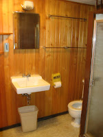 Downstairs prison bathroom. Solid steel shower like at the farm.