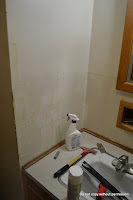 Scraping the residual tile glue from the old plastic tiles off the walls ooh so fun.